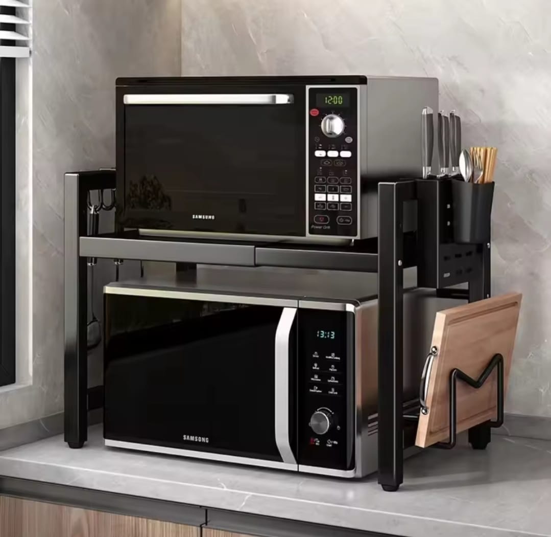 Space-saving kitchen organizer suitable for microwaves and small appliances